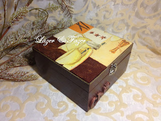 Caixa em madeira com 2 tabuleiros, pintada manualmente nos tons escolhidos e decoração com stikers, stencil, pedras brilhantes e fitas de gorgorão.