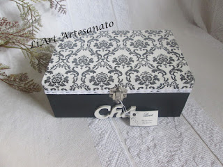 Caixa em madeira de pinho 22/14/4,5cm pintada e decorada manualmente com aplicação de meias perolas.