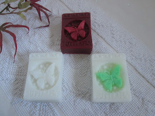 Sabonetes artesanais, elaborados manualmente com glicerina enriquecida com manteiga de karitê, cacau e manga, com essencia de flores brancas e corantes alimentares.