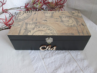 Caixa em madeira com oito divisões para saquetas de chá, pintada e decorada manualmente.