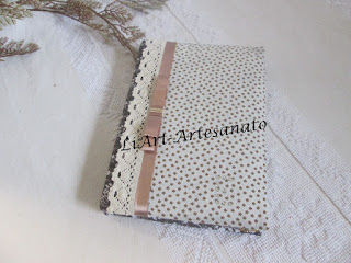 Agendas diarias de tamanho A5. forradas com tecido e aplicação de rendinhas e fitas de cetim.